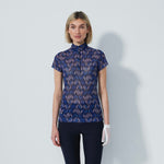 DS Breeze Dot Argyle Navy Pink Print Cap Sleeve Mesh Polo Shirt